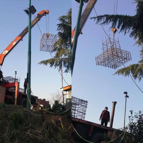 جاگذاری شبکه میلگردی (فونداسیون)دکل بیسیم ایستگاه آتش نشانی واقع در بام سبز توسط حوزه معاونت عمرانی شهرداری لاهیجان