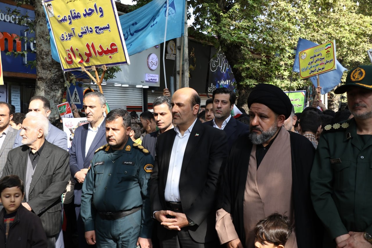 حضور مسئولان و شهروندان لاهیجان در مراسم راهپیمایی روز ملی مبارزه با استکبار جهانی و روز دانش آموز در 13 آبان سال 1404