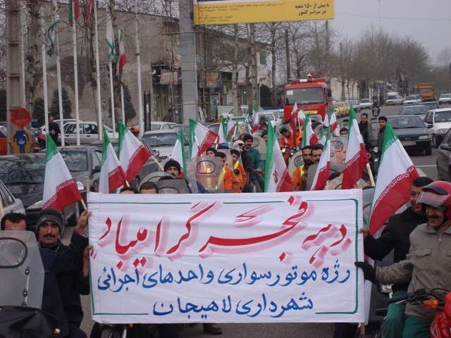 اين گزارش حاكي است: يگان هاي خودرويي ادارات و نهادهاي شهرستان نيز به همراه موتورسواران شهرداري درسطح شهر لاهيجان اقدام به برگزاري رژه نمودند.