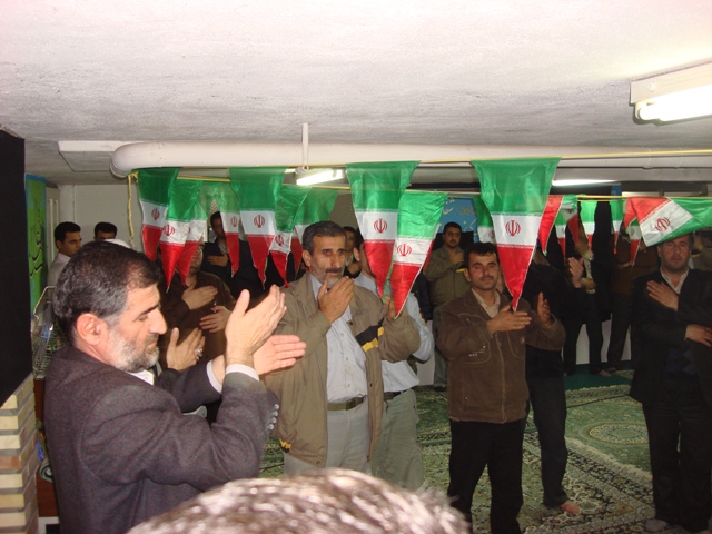 در اين مراسم با توجه به تقارن ايام دهه فجر امسال با دهه آخر ماه صفر و اربعين شهادت حضرت امام حسين (ع) حاضران به سينه زني پرداختند.